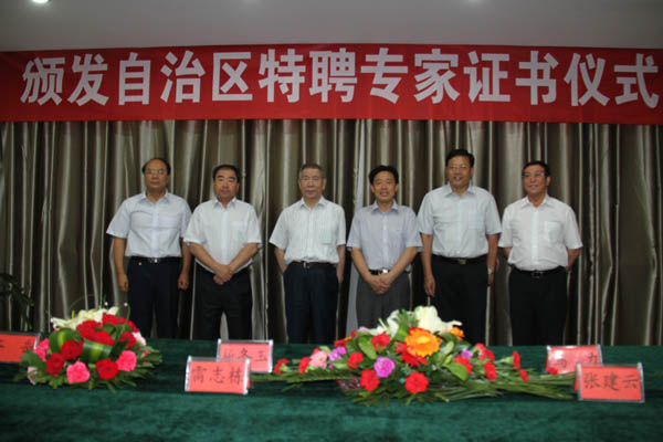 2012年8月3日,颁发自治区特聘专家证书仪式在银川兰花花国际大酒店贵宾厅举行。出席仪式的有自治区政府副主席屈冬玉,我校党委书记齐岳,我校副校级调研员兼3200威尼斯vip院长、自治区土建与水利工程院士工作站负责人田军仓等人。仪式由宁夏回族自治区人力与社会保障厅副厅长马力主持。