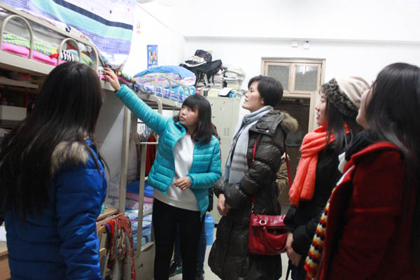 为落实学校有关期末安全稳定暨考试管理工作部署会精神,预防各类事故的发生,进一步加强宿舍安全防范和管理工作。2015年12月24日晚上8点,学院党委副书记张强携各年级辅导员对C区15号楼和21楼进行宿舍安全与卫生专项检查。