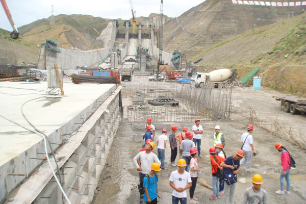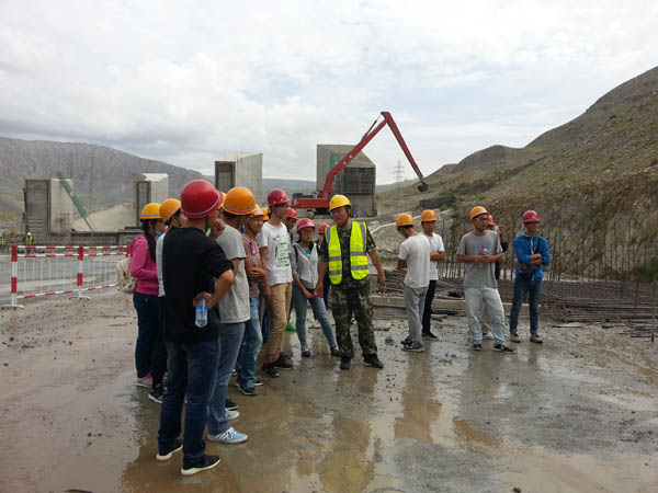 为了使同学们对大型水电工程的施工现场及施工过程有更为直观地了解,在项目业主黄河水电公司建设分公司李晓刚主任的大力协调下,学生分为四个小组轮流到四家施工单位进行现场实习和内业实习,既保证了实习的质量,也提高了实习的安全性。在现场实习开始前,由黄河水电公司专人强调实习安全须知,让学生了解实习过程中的危险和避险措施。此外,中国水电四局、中国水电十一局、武警水电部队二总队和葛洲坝集团派出专职技术人员对相关工程的设计、施工难题及解决措施、技术等进行专题讲座和工地现场讲解。在实习过程中,同学们现场观摩了自动化程度较高的大型混凝土拌合站、大体积混凝土浇筑现场、压力引水隧洞砌护等重点工程项目,对混凝土拌合站控制系统、混凝土浇筑仓位设计、特殊部位模板支护等有了深入的了解,并与现场技术人员进行了深入的交流和互动。