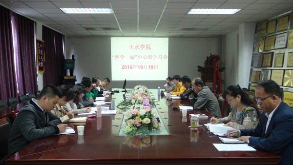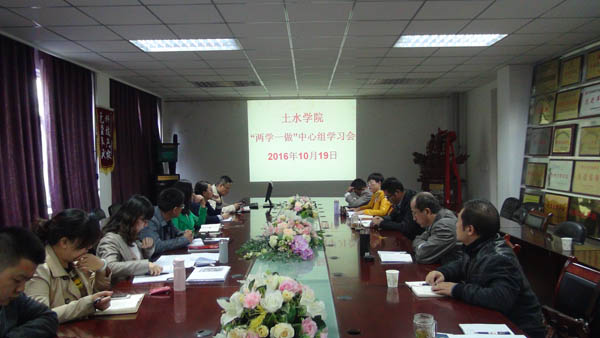 2016年10月19日上午,土水学院党委中心组在学院四楼会议室召开“两学一做”学习教育第三专题学习讨论会,本次讨论会由苏宇静副书记主持。学院领导班子,各系主任、三办一中心主任、工会主席和各支部书记参加了讨论会。会上,苏宇静副书记传达了学校《关于开展“两学一做”学习教育第三专题学习讨论的通知》文件精神,对下半年学院党委中心组理论学习进行了安排部署,对各支部研讨主题作出了明确要求。指出教工支部要围绕学院“十三五”发展目标和学风建设,就如何立足岗位履行义务、如何服务师生甘于奉献及如何发挥先锋模范作用这些方面进行认真展开讨论交流,要查问题、找原因、拿思路、出成果,为建设西部一流大学作出更大贡献。