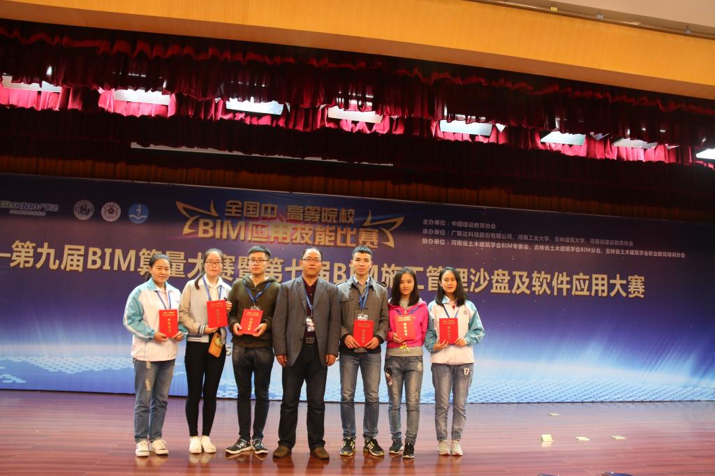 威尼斯vip官网张学科老师带领两支代表队6名队员赴河南工业大学参加比赛,经过一天紧张、有序、激烈的比赛,两支队伍分别在算量和沙盘中取得优异成绩。其中,由张学科、任杰、于新花老师指导的2013级工程管理专业刘亚婷、田璐璐、樊海霞获得沙盘常规赛(网络计划编制、施工现场三维布置图设计、仿真施工工艺模拟、工程项目策划)三等奖、BIM5D施工管理挑战赛二等奖、BIM招标项目管理挑战赛二等奖和全能奖二等奖,由张晓华和张学科老师指导的2013级工程管理专业王喆、刘灿、马晓琴获得算量常规赛(BIM土建算量、BIM钢筋算量、工程量清单计价和BIM5D施工管理)三等奖、BIM安装算量挑战赛三等奖、BIM招标项目管理挑战赛三等奖和全能奖三等奖。这是今年继由林卫公和张学科老师指导2012级工程管理专业康虹、司雄、郭为民、周思和2012级土木工程专业程超楠5名同学参加第二届全国高校BIM毕业设计作品大赛获得二等奖以来的又一喜人成绩,充分说明威尼斯vip官网师生对BIM技术的应用正在向专业化方向发展。