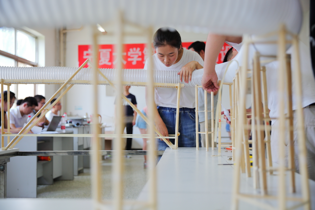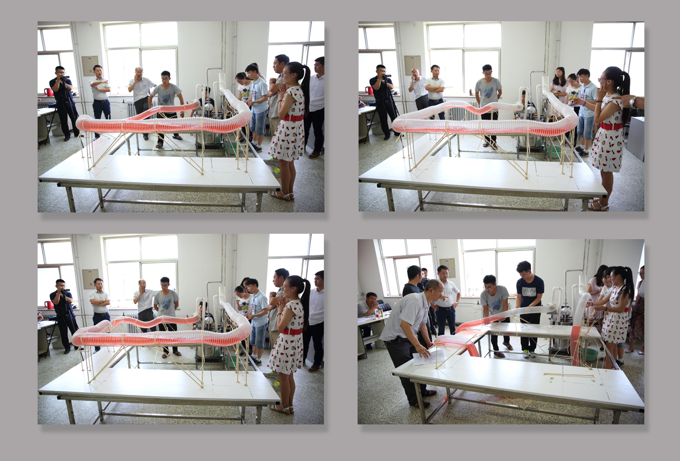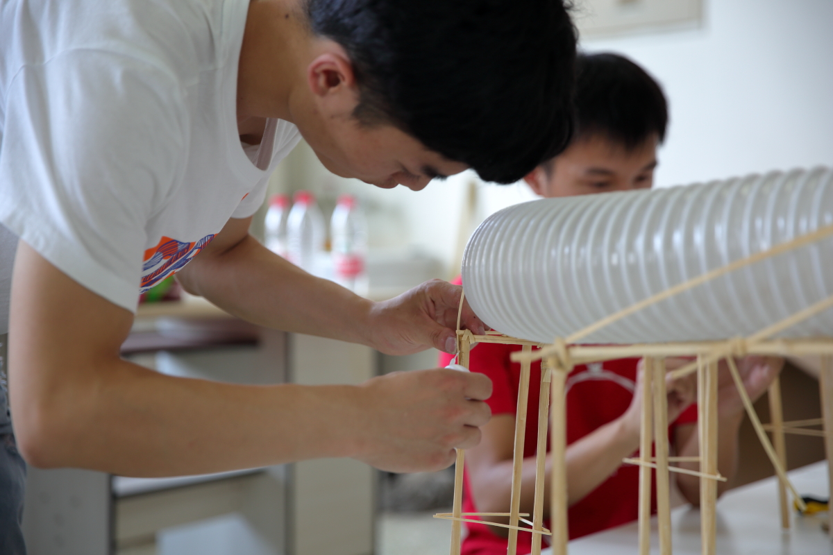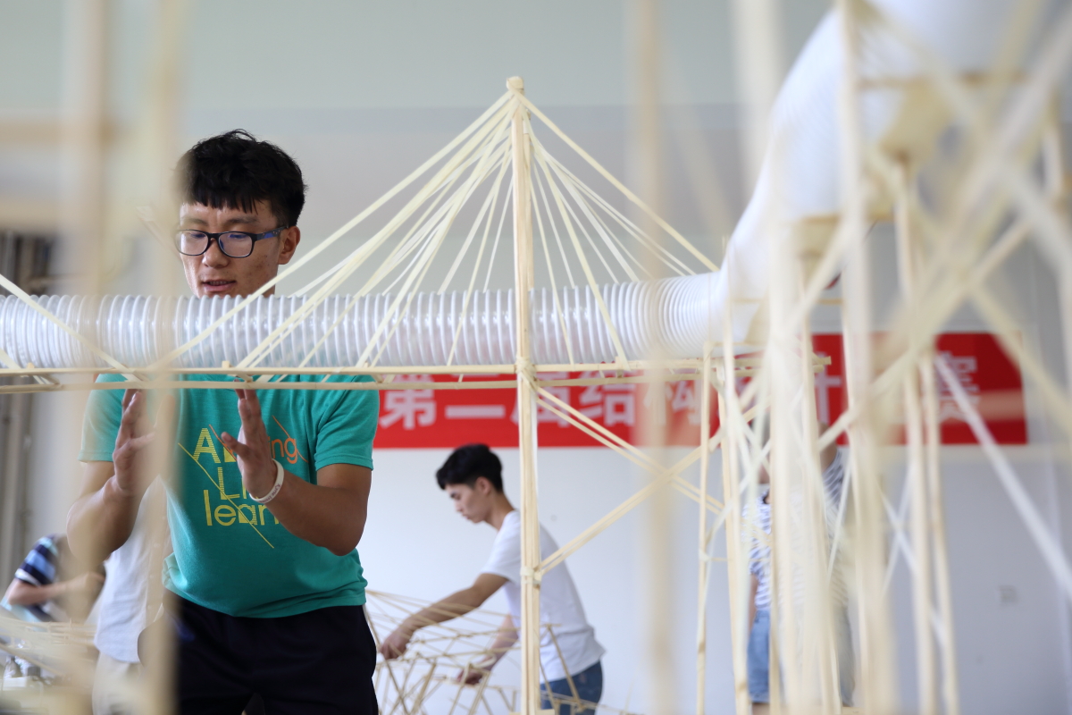 本次结构设计竞赛采用2017年全国赛题,以渡槽支承系统结构设计为背景,通过制作结构模型并进行输水加载试验,促使参赛学生共同探讨输水时渡槽支承系统结构的受力特点、设计优化、施工技术等问题。比赛要求选手在25分钟内现场安装制作模型并进行输水试验,从设计理念、承载能力、输水效率等方面进行综合评分。