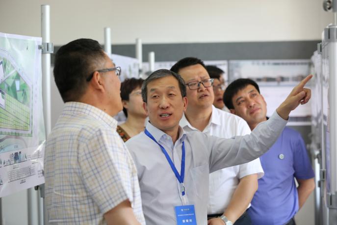 董教授先参观了学院的建筑城规专业展厅,详细听取了专业教师的讲解。在高书记、毛院长的介绍下,考察了学院文化环境建设,对院徽、院训、院史沿革、学科建设、科研课题、教学科研成果及学生工作等进行了现场了解,并对学生工作办公室、教学科研办公室进行访谈,对学院服务窗口的建设和服务意识给予了充分肯定。