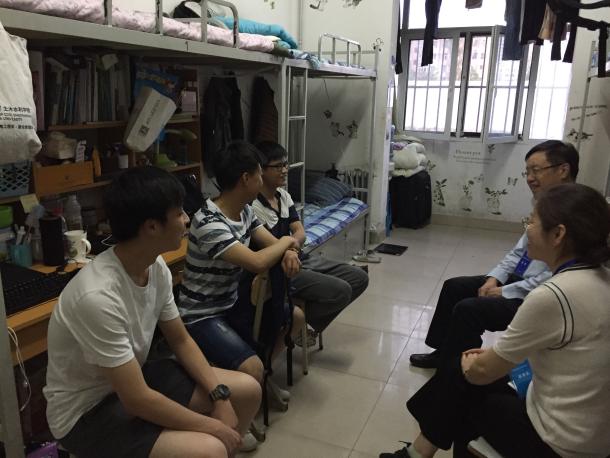 2018年5月15日晚上19时,本科教学工作审核评估专家组副组长、中国矿业大学原副校长范迅教授走进3200威尼斯vip学生公寓,并与学生深入交谈。