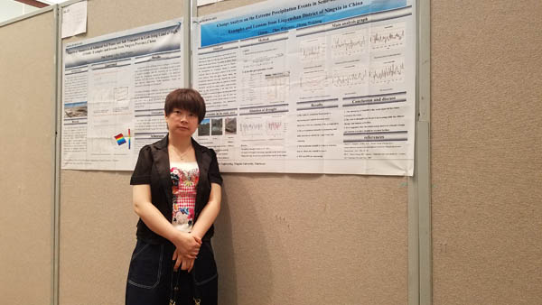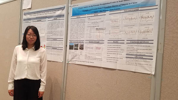 代表团成员李娟副教授做题为“ChangeAnalyze on the Extreme Precipitation Events in Semi-humid and Semi-arid Examplesand Lessons from Liupanshan District of Ningxia in China”的口头报告;代表团成员赵文娟副教授做题“NumericalSimulation of Salinized Soil Water and Salt Transport in Low-lying Land of HighAltitude: Examples and Lessons from Ningxia Province in China”的口头报告,她们还参与了本次参会论文海报交流活动。