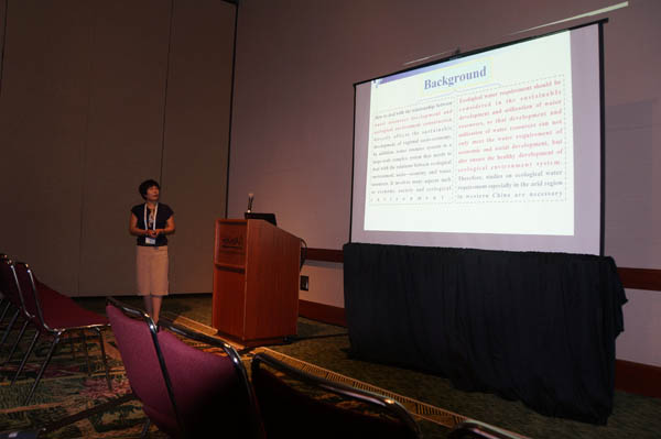 代表团成员李金燕教授做题为“VariationCharacteristics of Ecological Water Requirement Research about Forestland andGrassland in the Arid Area of the Central and Southern Ningxia”的口头报告;