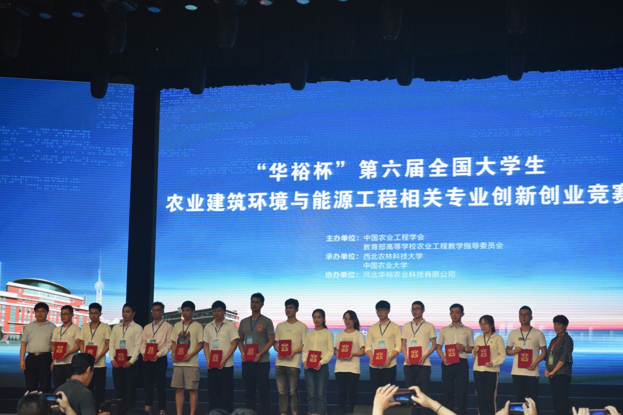 教育部高等学校农业工程类专业教学指导委员会和中国农业工程学会于2018年8月25~27日在西北农林科技大学顺利举办第六届华裕杯全国大学生(研究生)农业建筑(生物)环境与能源工程相关学科专业创新创业竞赛,我校在本次大赛中喜获佳绩,且被授予全国优秀组织单位奖。