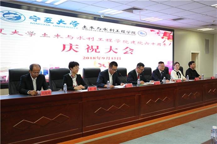 出席本次庆祝大会的有学院现任领导,学院历任退休老领导任天林、田军仓、何风军、王蔚书、宋建夏、姚青云,退休老教师毕先、孙庆合、赵素珍,长安大学公路管理学院党委书记田新民。参加本次大会的还有宁夏建筑科学研究院院长吴学谦、天津市农业科学院/南开大学教授许向路、深圳大学教授武春江、银川宏达职业技能培训学校校长哈丽琼、宁夏第一建筑有限公司党委书记刘东升、总经理苏克宁,宁夏共和建设工程有限公司总经理殷展眉、国网电力公司宁夏分公司后勤处主任苏震等百余名来自全国各地的校友,以及学院师生代表300余人。庆祝大会由学院党委副书记苏宇静主持。