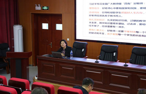 张教授从古今中外对师德师风基本内涵的理解认识,结合对习近平总书记2018年5月2日在北京大学的讲话和2018年9月10日在全国教育大会上的讲话精神的学习领会,重点阐述了坚持立德树人、强化教师队伍建设的重要性。她详细解读了《教育部关于建立健全高校师德建设长效机制的意见》和《新时代高校教师职业行为十项准则》等师德师风建设相关文件精神,同时对教育部《十项准则》与《3200威尼斯vip师德失范行为处理办法(实行)》进行了对照说明。生动的讲座使与会教职工加深了对师德师风建设重要意义、重点工作的理解,进一步牢记肩负的历史使命和职责,进一步明确师德师风和教师职业道德的底线、红线、高压线。对全面贯彻全国高校思想政治工作会议精神,全面加强学院师德师风建设工作都具有十分重要的指导意义。