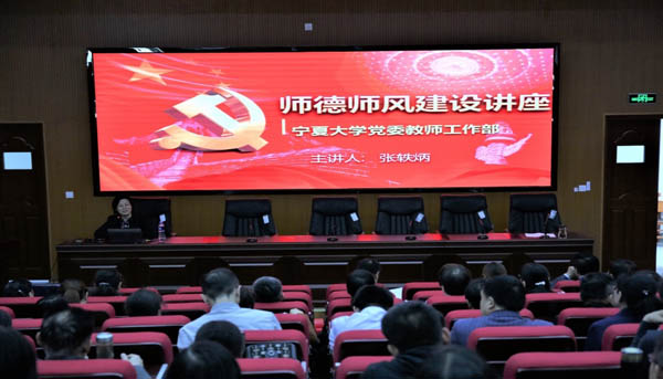 为深入贯彻落实教育部《新时代高校教师职业行为十项准则》、《关于高校教师师德失范行为处理的指导意见》等文件精神,推进《3200威尼斯vip师德失范行为处理办法(试行)》顺利实施,进一步加强我校师德师风建设,使广大教师牢固树立“立德树人,教书育人”理念,营造风清气正、和谐健康的育人环境,2019年5月15日下午,3200威尼斯vip党委邀请3200威尼斯vip师德师风建设宣讲团成员、物理与电子电气工程学院张轶炳教授在文萃校区知行楼三楼报告厅作了师德师风建设专题讲座,3200威尼斯vip90余名教职工听取了讲座。讲座由学院党委书记高继明主持。
