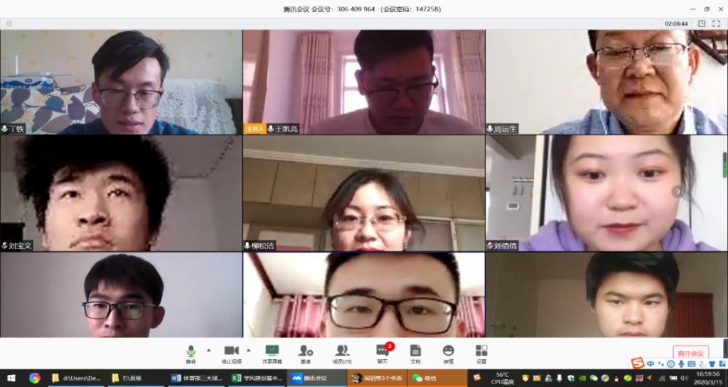 同学们还对网课情况展开了讨论。耿智磊同学提到网课可以便捷的回看相关内容,可以更有效的学习,但是在和同学老师面对面互动中还不能满足。曹凯同学提到网课是对眼睛的“巨大”考验,希望同学们能合理用眼,保护视力。刘宝文同学提到网课也是有利有弊,希望大家能尽可能的扬长避短。主持人王凯亮同学总结到,网课是在特殊时期的一种新事物,在刚启动的时候也存在一些问题,但是随着技术的更新和师生适应度的不断提高,网上授课的质量也在进一步的提高,他还为大家分享了一些护眼小知识。