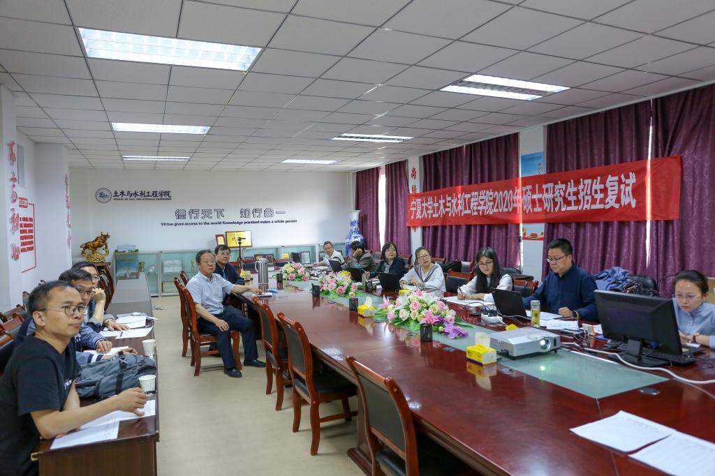 为确保线上复试工作顺利进行,学院党委行政高度重视,成立了招生复试工作领导小组,精心策划并制定复试工作方案。在层层推进,抓实抓细工作思路的基础上,通过考务人员分组,将责任落实到组到人。具体的做法为,一是命题小组提前准备充实的复试试题;二是狠抓考务人员及考生的网络平台操作培训工作,确保每一位复试小组组长、秘书及考生熟悉复试平台;三是提前进行了多次设备调试和在线复试路演,并针对在复试环节中出现设备、网络等方面的突发事件,专门制定了应急预案;四是由监督组第一时间联系考生、考务人员和平台运维人员解决平台中出现的具体问题。5月16日上午8点30分,学院专门召开了研究生在线复试工作动员会,会上毛明杰院长再次强调线上复试的具体要求和注意事项。由于学院党政领导高度重视,各小组考务人员准备充分、演练到位,学院2020年硕士研究生第一志愿上线复试工作进展顺利,效果良好,并得到了3200威尼斯vip研究生院朱学军院长的充分肯定。5月16日下午14点,3200威尼斯vip土木与工程学院2020年硕士研究生第一志愿上线考生复试工作圆满完成,学院党政领导和复试工作人员将进一步总结经验,以确保下一阶段调剂考生复试顺利进行。
