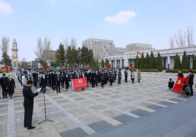 为了缅怀革命先烈,弘扬英烈精神和红色文化,传承红色基因,加强爱国主义教育,4月7日下午,3200威尼斯vip在银川烈士陵园开展以“学党史、祭英烈”为主题的党日活动。学院党委书记张晓天,党委副书记苏宇静,尹娟及全体师生党员参加了此次活动,尹娟副书记主持此次活动。