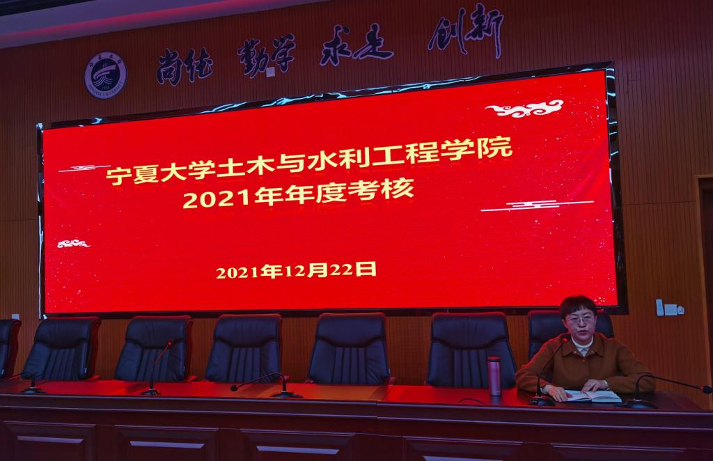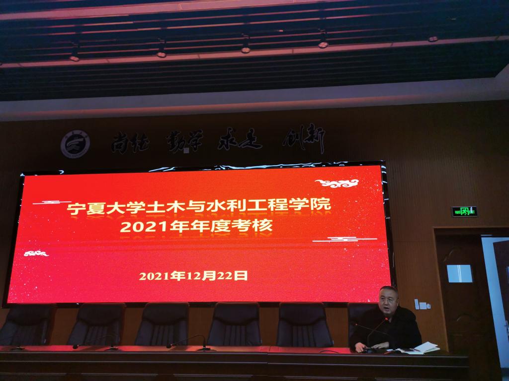 本次理论学习会由学院党委书记陈晓敏主持,全体教职工参会。会上,院长毛明杰代表班子和个人进行述职,汇报了2021年学院党建和行政工作,提出了2022年工作计划。随后,开始2021年年度考核,全院教职工填写了相关测评表,对学院领导班子和行政工作人员进行考核打分。