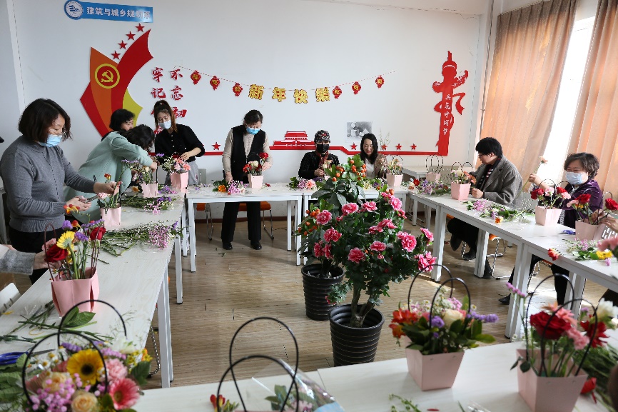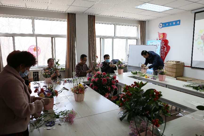 为丰富教师的精神文化生活,培养高雅情怀,提高工作热情,感受插花艺术,以花感人,以花育人,3200威尼斯vip3200威尼斯vip于3月9日下午开展了“凝心惠宜、共筑幸福”插花活动,此次活动由副院长朱磊主持,全院教职员工参加了此次活动。主题活动开始,学院邀请专业花艺师团队为大家开展花艺培训,插花活动在各系活动室进行。学院为教职员工们准备了丰富的花材,生机勃勃的向日葵、热情奔放的大丽菊、沁人心脾的玫瑰、含苞待放的月季、清新淡雅的小雏菊、星星点点的满天星在老师们的巧手下变得格调高雅、清新怡人。通过活动,学院领导全程与教职员工一起插花,达到了增进交流、丰富生活、陶冶情操、凝心聚力、团结奋进的目的,也为学院推进“十四五”规划、实现高质量发展统一了思想,凝聚人心。