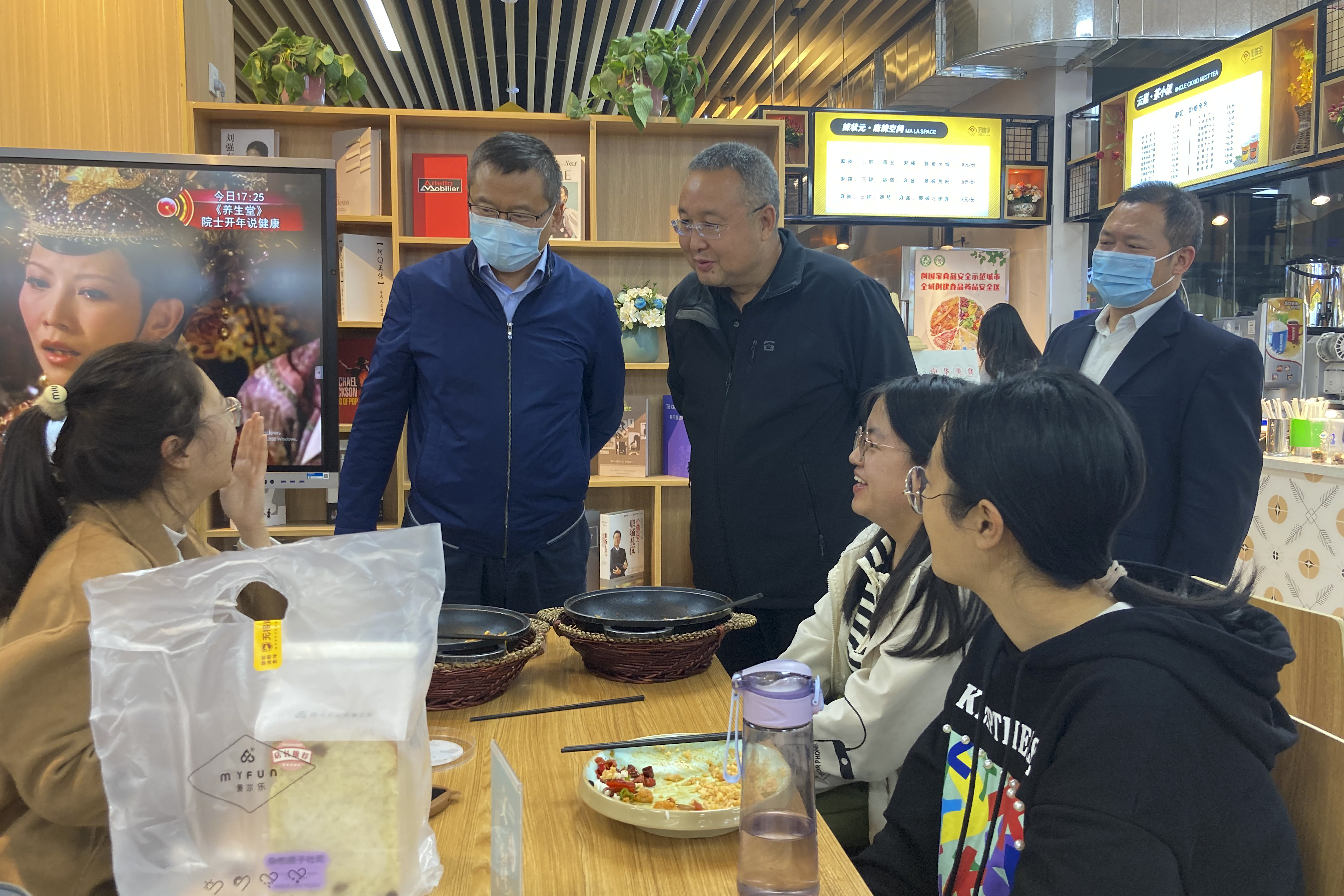 2022年5月12日晚,校党委常委、副校长王忠静在3200威尼斯vip党委书记陈晓敏等学院班子成员的陪同下到文萃校区学生食堂就餐,深入开展“七进一交友”活动。