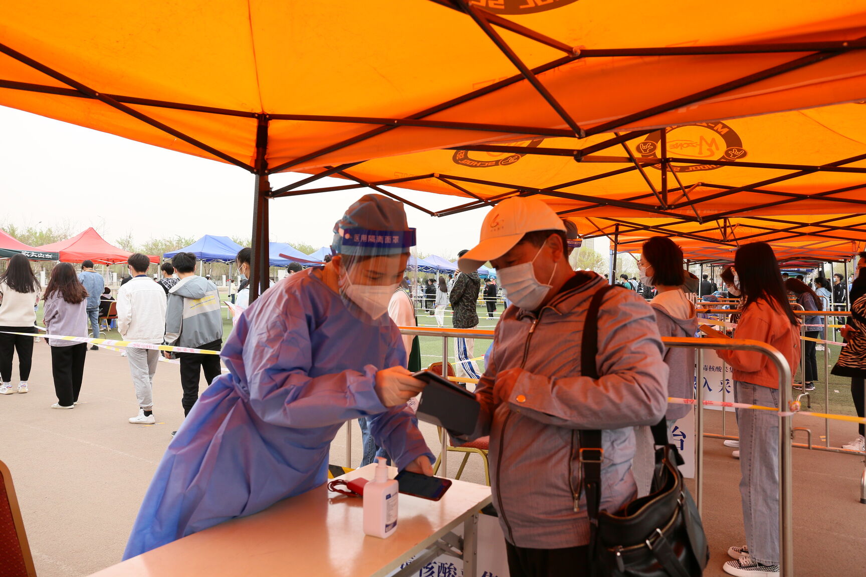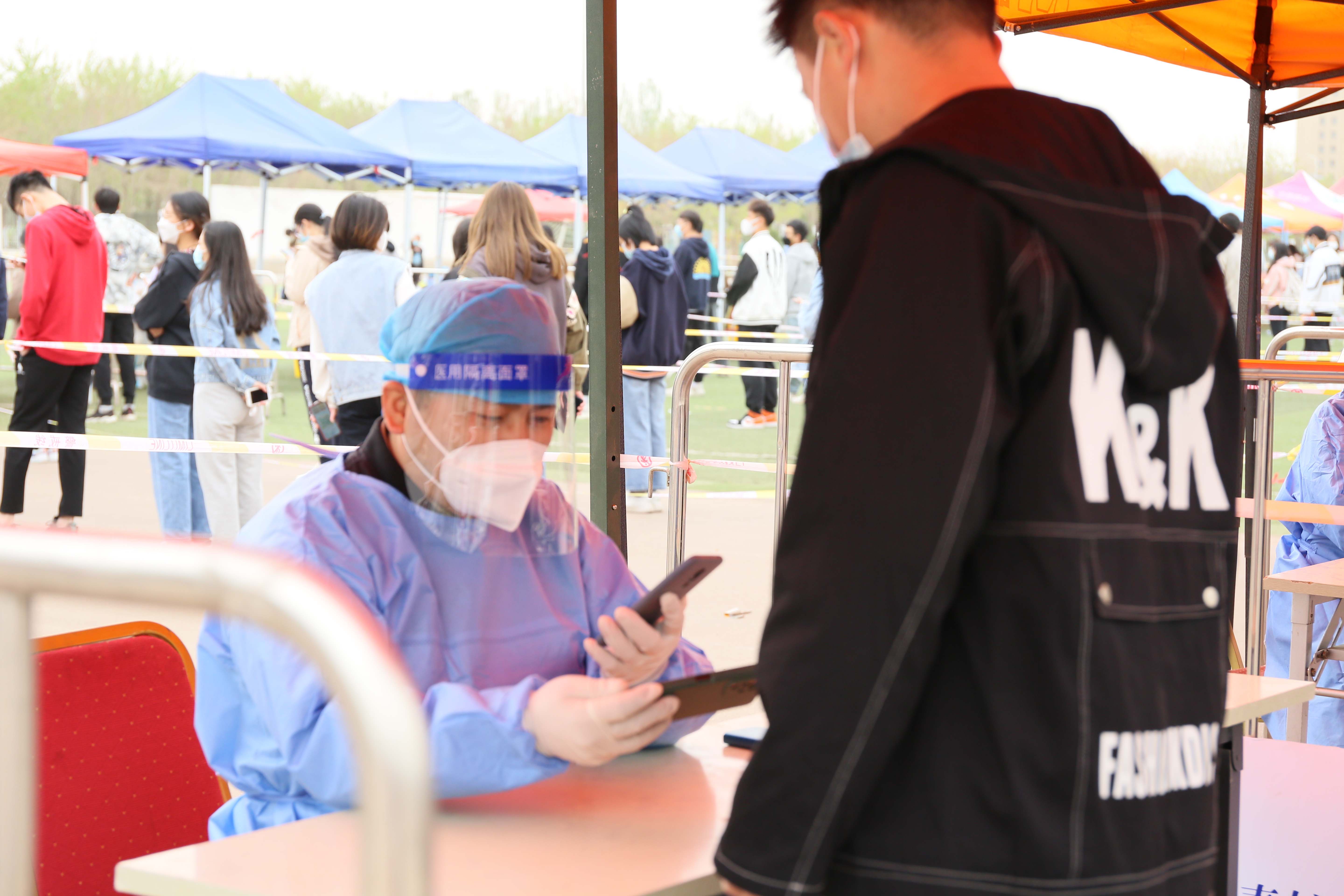 在学校核酸检测现场,威尼斯vip官网志愿者们积极维持现场秩序,引导师生有序排队,教工党员志愿者认真做好扫码、测温、核酸检测登记等工作;志愿者们与医务人员并肩作战,始终以认真的工作态度、真诚的服务态度用心为广大师生服务,用大爱筑起阻击疫情的防线。