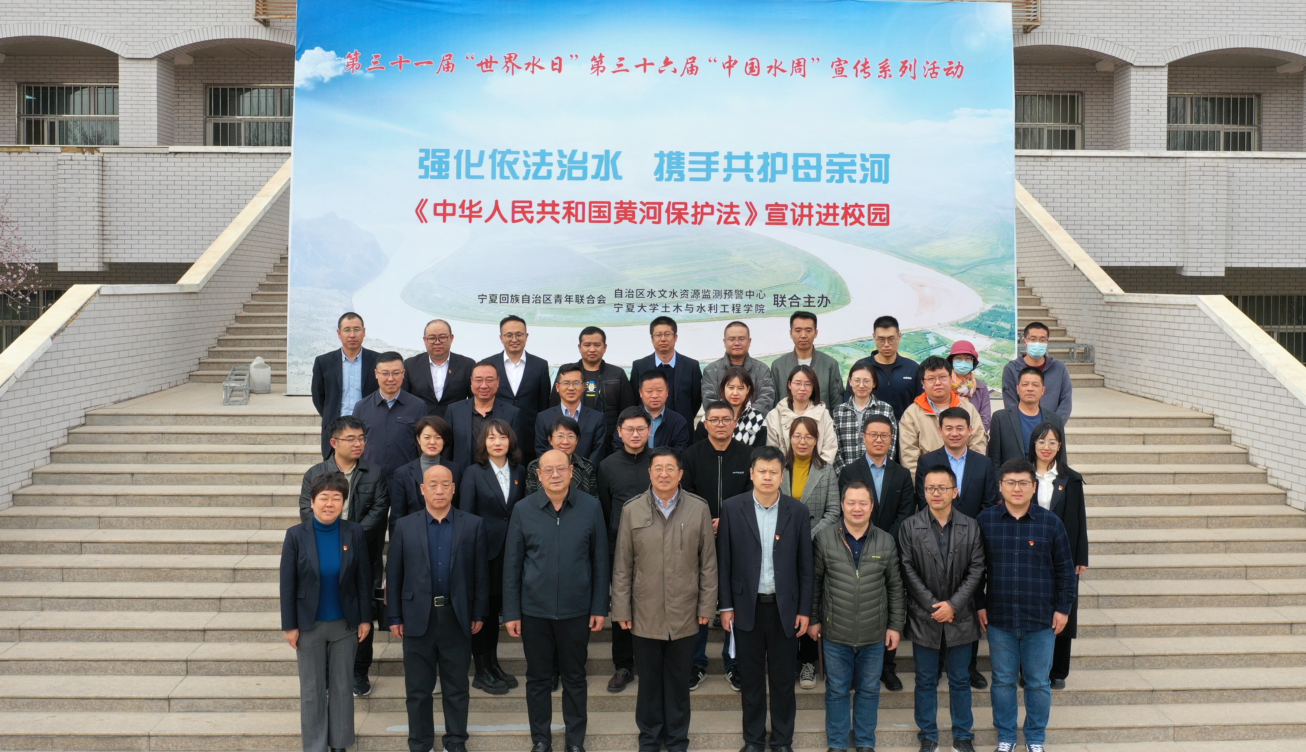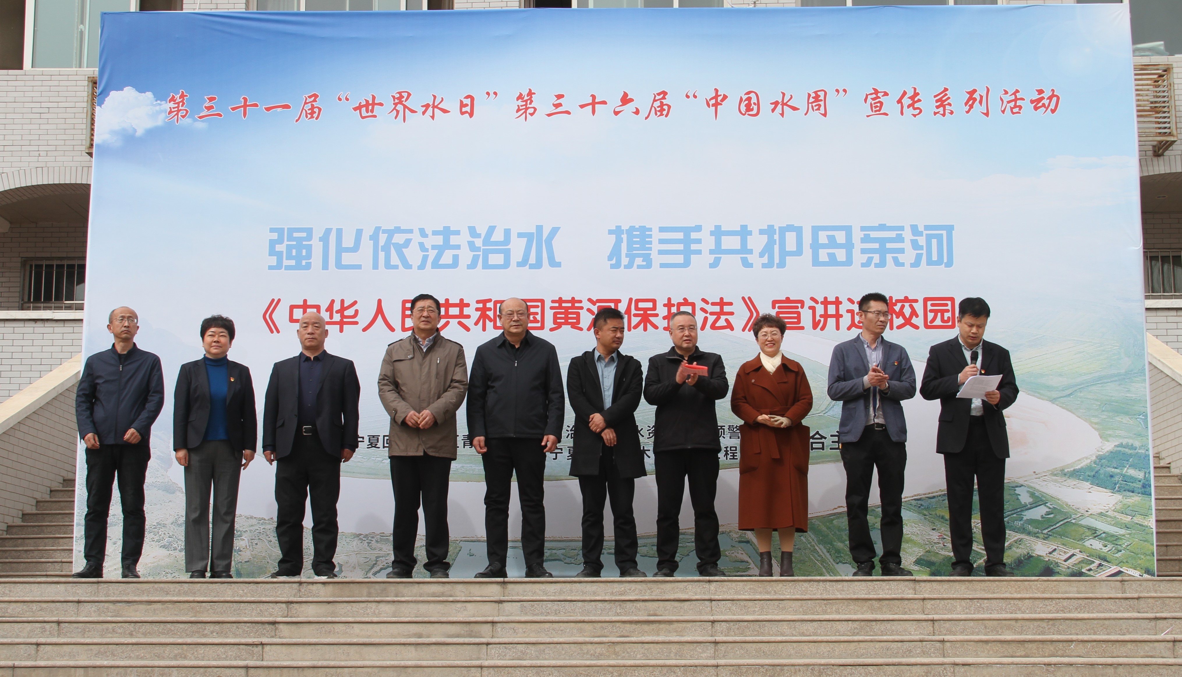 为了引导广大师生树立节约水资源、保护母亲河的理念,2023年3月22日14:30-17:00,宁夏青年联合会、宁夏水文水资源监测预警中心、3200威尼斯vip3200威尼斯vip联合开展2023年“世界水日”“中国水周”宣传活动。参加活动的有:宁夏青年联合会副主席吴尚轩、主任委员3200威尼斯vip光伏材料重点实验室副主任李海波等;自治区水文水资源监测预警中心党委书记侯树增、主任杜历、纪委书记李宗会、副主任徐涛、包淑萍,各科室负责人、业务骨干;3200威尼斯vip党委书记陈晓敏、副书记尹娟、苏宇静、副院长刘海峰、李王成和水利工程系师生。活动由徐涛副主任和水利工程系党支部书记何进宇主持。
