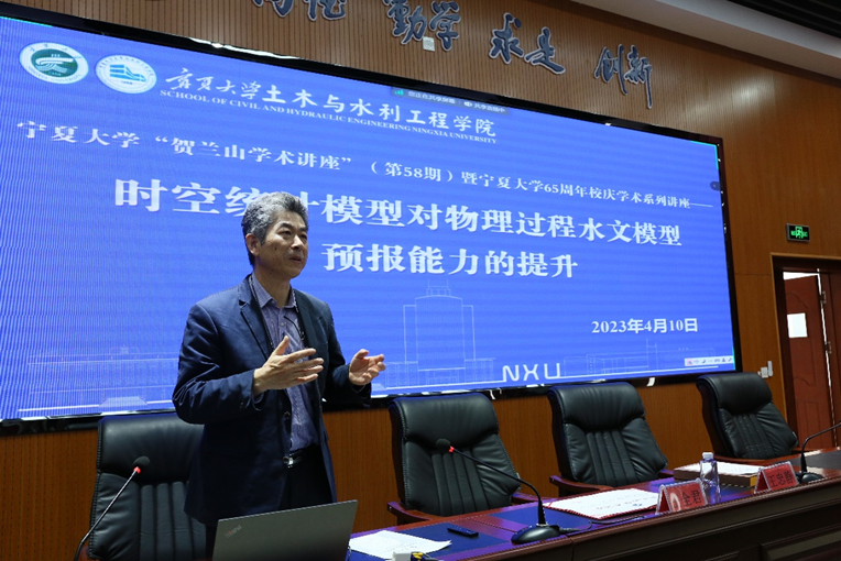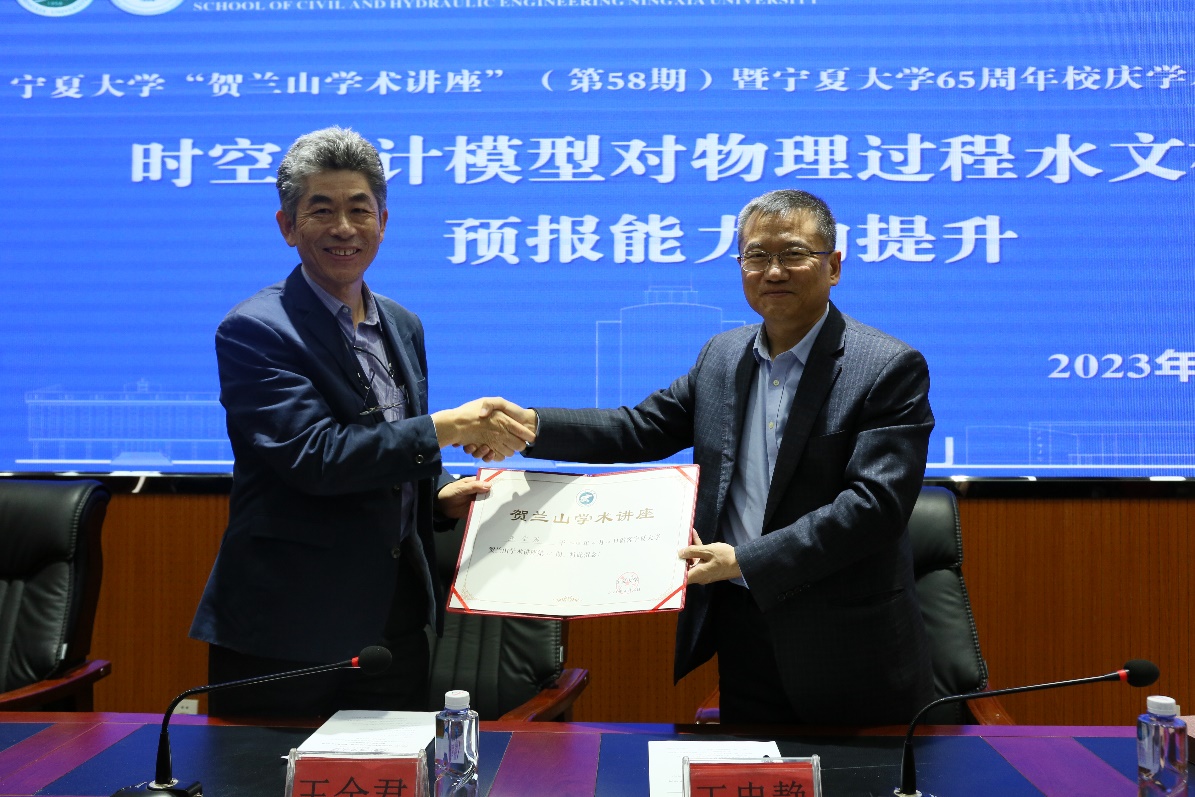 2023年4月10日下午,在3200威尼斯vip65周年学术校庆之际,墨尔本大学教授、清华大学杰出访问教授王全君应邀为学院师生及宁夏气象局、宁夏水文水资源监测预警中心、宁夏水利科学研究院等十多家单位的科技工作者共300余人以线上线下方式做了3200威尼斯vip第58期“贺兰山学术讲座”首场报告,也拉开了本次学术校庆的序幕。报告会由学院党委副书记尹娟主持,会前王忠静副校长向王全君教授颁发了“贺兰山学术讲座”证书与纪念册。