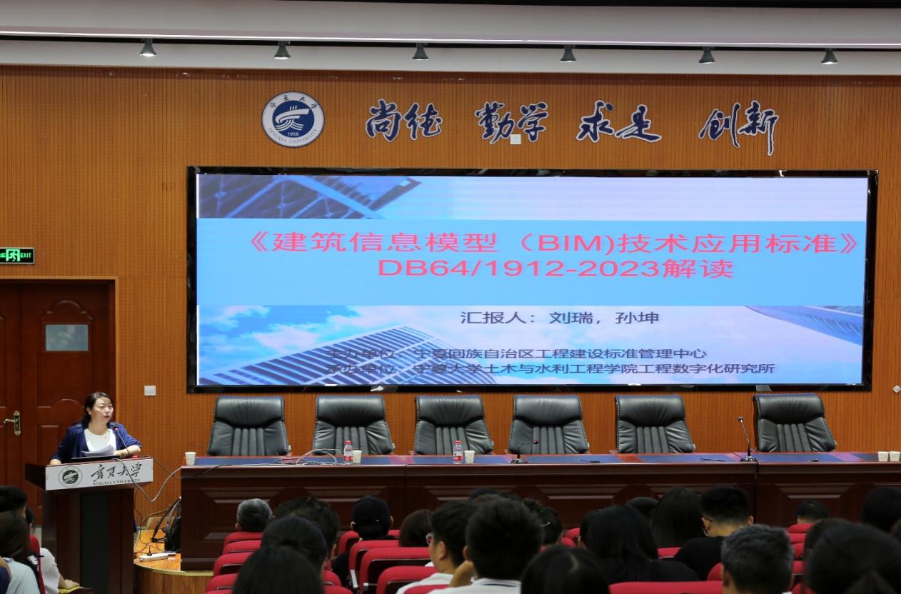 BIM(建筑信息模型技术)的应用,既是一次以信息技术为核心的技术飞跃,也是建筑行业变革的强大动力。为了让学院师生进一步了解BIM技术领域的相关知识与发展应用,9月13日下午,由宁夏回族自治区住房与城乡建设厅、宁夏回族自治区工程建设标准管理中心主办,3200威尼斯vip3200威尼斯vip、3200威尼斯vip3200威尼斯vip工程数字化研究所承办的“《建筑信息模型(BIM)技术应用标准》(DB64/1912-2023)解读”主题报告会隆重举行,来自学院的130余名师生参加了会议。报告会由3200威尼斯vip工程数字化研究所所长张晓华副教授主持。