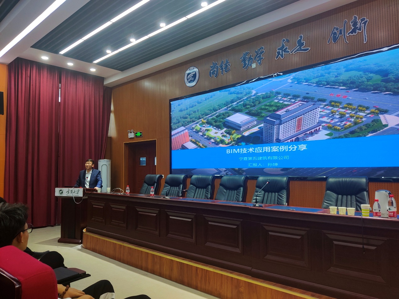 在报告中,宁夏城建设计研究院刘瑞工程师首先阐述了BIM基本概念和当前国内外发展现状,结合一系列案例,介绍了BIM在建筑工程方面的应用,并从国家相关政策层面对BIM应用前景作了剖析,指出BIM浪潮下建筑行业的发展方向。宁夏第五建筑有限公司工程部孙坤副部长结合自身的项目经验和研究成果,通过大量图片影像资料生动讲解了当前建设行业存在的问题及优化手段。并以参建的宁夏中医医院门急诊综合楼暨中医药传承创新工程项目为例,全面地分析了BIM技术在实际工程中的应用。最后张晓华老师对会议进行了总结,并代表学院和工程数字化研究所对主办方及主讲人表示了感谢,双方表示将继续积极举办此类宣贯活动。