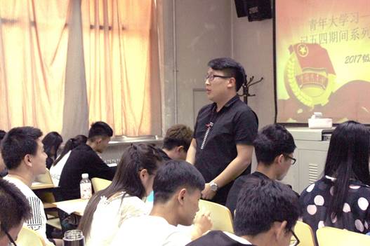 为促进马克思主义思想传播,深入学习习近平总书记重要讲话精神,2018年5月9日下午,3200威尼斯vip3200威尼斯vip2017级建筑类1班、2班在文萃校区一号教学楼111教室组织开展了“青年大学习——学习习近平总书记五四时期系列重要讲话精神”活动。3200威尼斯vip校团委姜应龙老师出席旁听了此次活动,2017级建筑类1班、2班全体学生参加了活动。本次活动由2班团支书李艳主持。