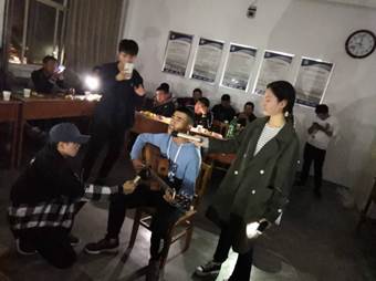 晚会于7点半正式开始。首先,由各班班委为同学们分发食物与饮料,同学们的情绪都十分高涨。随后,各班的同学开始才艺表演与游戏互动环节,班级之间的联谊也随之展开。交通工程班与工程管理班共聚703室,准备节目的同学陆续站到教室中间表演,两个班的同学还一起玩了抢凳子、击鼓传花等游戏。气氛十分活跃。农业与水利工程班首先由小班魏东旭和班助刘佳佩、庞志祥共同送上中秋节的节日祝福,并且表演节目。随后,在班委的组织下,邀请交通工程班杨佳亮同学表演节目,最后全班同学合唱《朋友》,大家共同沉浸在集体的温暖中,其余四个班级也有序地举行了中秋晚会,同学们都踊跃参与其中。