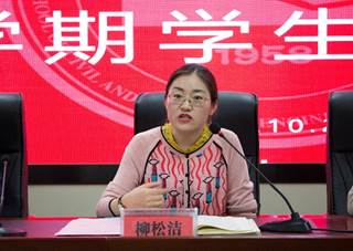 柳松洁作总结讲话。她代表学院党委、行政,对获得表彰的6个先进班集体和13个卫生标兵宿舍表示祝贺,希望他们能进一步加强班级、宿舍建设,充分发挥先锋模范带头作用,做好先进,当好标兵。她指出,全体学生干部要“先学生、后干部”,要恪守学生本分,勤奋学习,要模范遵守校规校纪,要扎扎实实做事,摒弃庸俗风气。她要求,各级学生干部要认清岗位需求和价值,认清岗位的深层次要求,认清管理和服务的辩证关系,做有态度、有素质、有能力的学生干部。她表示,各级学生干部对待学生工作,要做到尽全力发挥自身的聪明才智、尽全力调动有效资源、尽全力借力发力,珍惜锻炼能力的机会,公私分明,甘于奉献,努力成为一名胸怀理想、心系同学、品学兼优、作风扎实的学生干部。她表示,学院将进一步健全学生干部选拨、考核、退出机制,进一步加强对学生干部的培养、教育和管理,对表现优异的学生干部加大表彰力度,表彰先进,树立典型。她希望,全体学生干部能沉下身子,多学、多做、多思考,充分发挥作为学生干部的榜样力量,积极工作,广泛团结同学,认真落实工作任务,不断提高自身素养,为推动班级、学院建设贡献自己的力量!