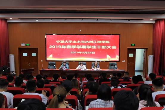 2019年5月24日中午,3200威尼斯vip3200威尼斯vip2019年春季学生干部大会在知行楼三阶报告厅隆重召开。学院党委副书记柳松洁,学生工作办公室老师王娜、蒋宇欢,以及团委学生会主席团、部长团成员,各班班委、支委参与此次大会。会议由蒋宇欢老师主持。