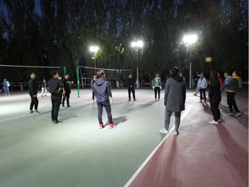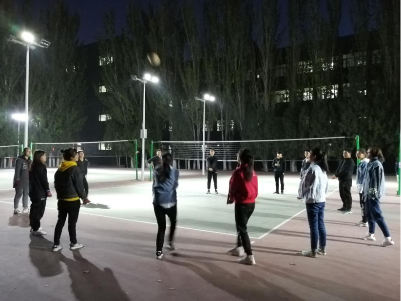 夜幕降临,垫球技术的学习仍在进行,队长们提醒队员一定要保持正确的击球点和击球部位,把这两项内容当做训练的重点,运用行之有效的教学方法,反复练习,巩固提高。