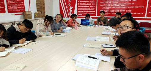 第二阶段是马丰元同志带领大家学习“落实立德树人的根本任务”。首先马丰元同志阅读了关于立德树人的有关文献,文献中讲到:“国无德不兴,人无德不立”。在中国特色社会主义进入了新时代的历史方位下,借鉴中华民族优秀教育传统,重申立德树人的指导思想,赋予其符合时代发展和当代国情的内涵,是民族复兴语境下中国教育发展的必然要求。在他读完文献时,虎攀智同志提出了一个有深刻意义的问题:“培养什么样的人?怎样培养人?为谁培养人?”大家马上又进入了讨论的热潮。各个党员同志开始发表自己的观点。丁永发同志说:“培养什样的人?培养社会主义接班人,培养爱国、敬业、诚信、友善的人。从个人层面讲,提高当代大学生的责任心,提高自身素质,以身作则。从国家层面,改变机制做引导,弘扬传统文化,深化教育体制改革”。许弟兵同志指出:“怎样培养人?要科研育人,服务育人,管理育人,教书育人。大学不仅仅会带来知识,更是一个平台,我们每个人要去展示自己,跟着导师去做科研,多做实践活动,丰富自己的阅历”。