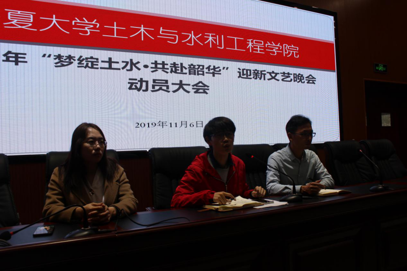 2019年11月6日下午,3200威尼斯vip3200威尼斯vip2019年“梦绽土水·共赴韶华”迎新文艺晚会动员大会在知行楼三阶报告厅顺利召开。学生工作办公室王娜、蒋宇欢、万愉快出席会议,全体迎新晚会表演人员参加了本次会议。