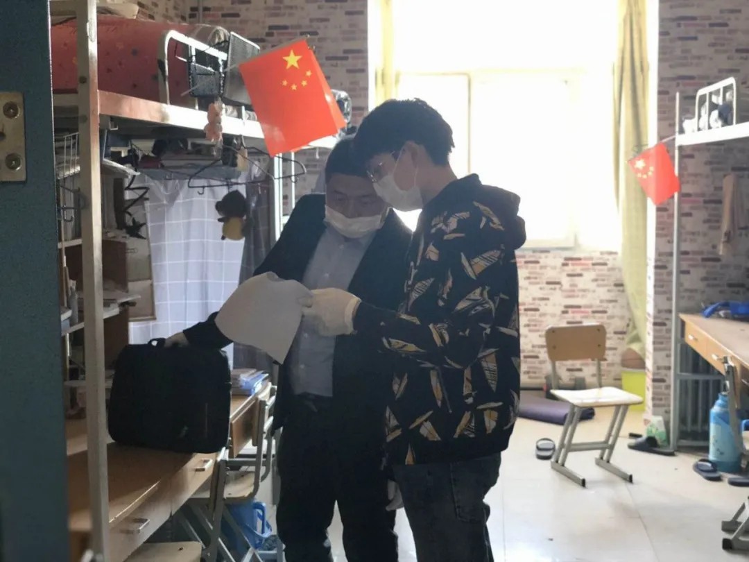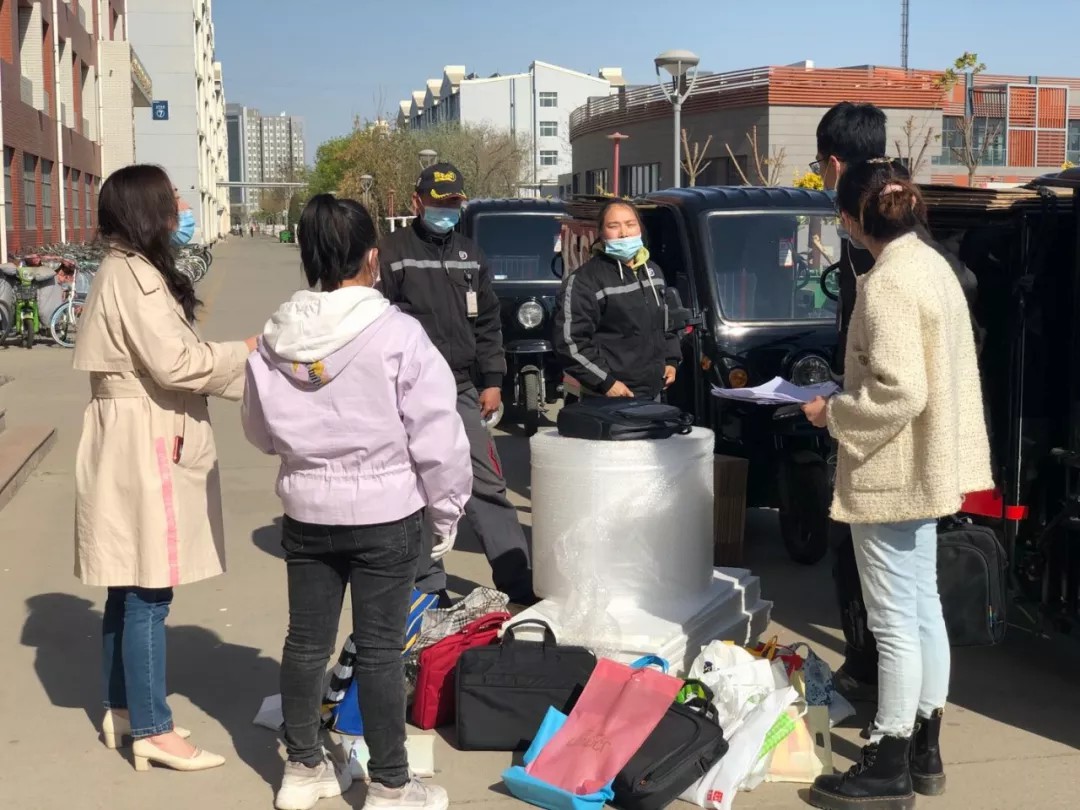 2020年4月23-24日,经学校批准,学院学工办全体老师穿梭在各个宿舍里,根据同学们填写的宿舍号和物品所在位置,找到同学们需要的取件物品。