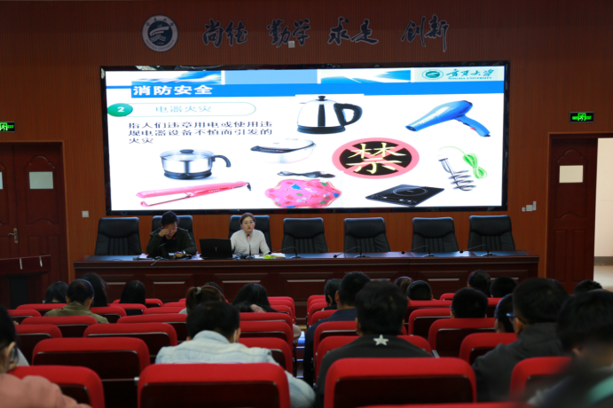 本次讲座分为网络文明、网络安全、安全教育、禁毒教育四大板块。柳松洁点明,网络与大学生的生活息息相关,但希望同学们能杜绝网络不文明行为,并以“许可馨事件”和“黄嘉毅事件”举例证明网上不当言论的严重后果,阐明开展网络安全教育的必要性。柳松洁枚举网络安全的相关法律法规,列举典型的安全事例,建议大家使用正版软件,强调校园网贷的危害并列举了许多典型事例,其中贺兰山校区某学院学生受骗痛悟写下的打油诗给学生留下了深刻印象。柳松洁强调了安全教育中的交通安全与消防安全,特别强调研究生不要请导师吃饭,不要在宿舍私藏违禁电器,并介绍了毒品的种类,号召大家珍爱生命远离毒品。
