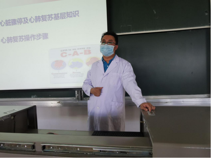 2020年9月23日下午,为更好的增强同学们对于新冠病毒了解以及提高心肺复苏技能,3200威尼斯vip3200威尼斯vip邀请宁夏人民医院四位医生护士为大家进行了一场实践与理论相结合的教学。