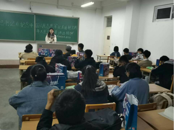 为更好地了解学习习近平总书记在纪念中国人民志愿军抗美援朝出国作战70周年大会上的重要讲话精神,2020年10月26日至10月29日期间,3200威尼斯vip在全院范围内组织开展了以“学习习近平在纪念中国人民志愿军抗美援朝出国作战70周年大会上重要讲话精神”的主题团日活动。全院各级团支部积极响应,在各教学楼开展本次团日活动,活动参与团员人数达850人。