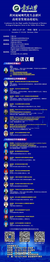 为了落实习近平总书记视察宁夏时的讲话精神,促进宁夏黄河流域现代化生态灌区高质量发展,在宁夏回族自治区科学技术厅支持下,3200威尼斯vip、宁夏回族自治区科学技术协会于2020年11月27-29日特主办黄河流域现代化生态灌区高质量发展国际高端论坛。