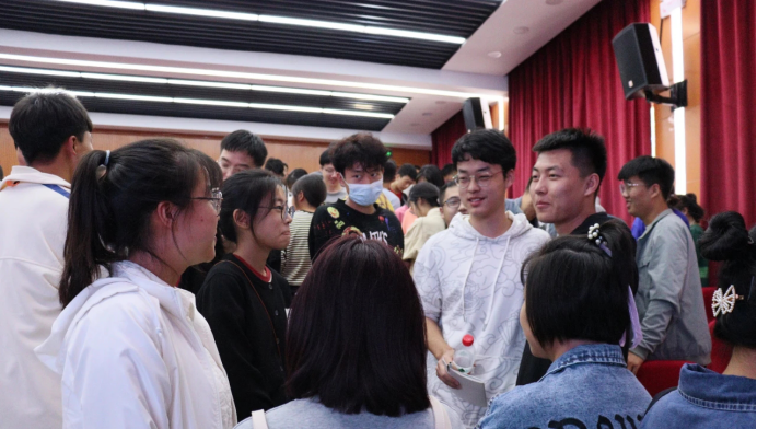 秦莉围绕“美好大学,从‘心’开始”这一主题,针对新生难以适应新环境的焦虑心理,理想与现实的反差形成对比失落心理,人际关系难以适应的抑郁心理,自我评价失调导致的自卑心理和失去奋斗目标的迷茫心理五方面问题,深入浅出地举例分析,劝导同学们及时调整心态,不要错失宝贵机会,教导同学们学会爱,明晰与他人相处的能力的重要性。秦莉让同学们为自己的适应力打分,并组织了认识十个朋友的互动活动,同学们积极响应,在互动中相互介绍自己的家乡、喜好,握手拥抱,互换联系方式。