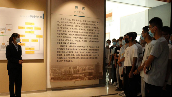 2021年9月7日,3200威尼斯vip3200威尼斯vip“爱校荣校的归属感教育”主题校史展览活动在3200威尼斯vip贺兰山校区科技楼一楼校史馆开展。2021级全体新生参加了此次活动。
