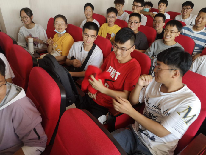 接着到了“党史知识竞答”的环节,同学们击鼓传花,被选中的同学们回答关于党史的问题,正确率很高,不幸答错的同学也都带着自己的小伙伴上去唱了《没有共产党就没有新中国》等红色歌曲或是积极向上的流行歌曲。同学们同聚一堂,在欢声笑语中学习党史知识。