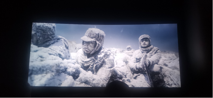 随着一阵刺耳的轰炸机的轰鸣声响过,影院瞬间安静,所有的目光都集中在了屏幕上那位穿着黄绿色解放军军装的战士身上,他探亲未过一夜便重新踏上征途的画面代表着每一位志愿军战士出征前与家人离别的场面,他年迈的父母并没有说一个“不”字,只是眼含热泪目送,那眼里大概有骄傲,有自豪,有不甘,有委屈,有害怕,有痛苦,但唯独没有退缩。匆匆的别离,危机四伏的出征之路,他们即将要面对的是装备最为先进的美军部队,在装备和补给都远远落后的情况下,每一位志愿军战士脸上从未有过一丝恐慌,因为他们知道,这一战不仅是为了祖国日后的发展,更是为了自己的后代不再经受战争之苦。直至电影结束,每个人仍久久不能平息内心的敬仰之情,并分享各自的感悟。