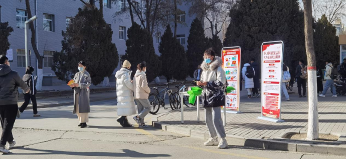 在国家宪法日前夕,3200威尼斯vip于12月3日下午,组织了由5名党员组成的志愿者小分队,于兰菊苑餐厅门口向来往同学发放普法传单,普及宪法知识。