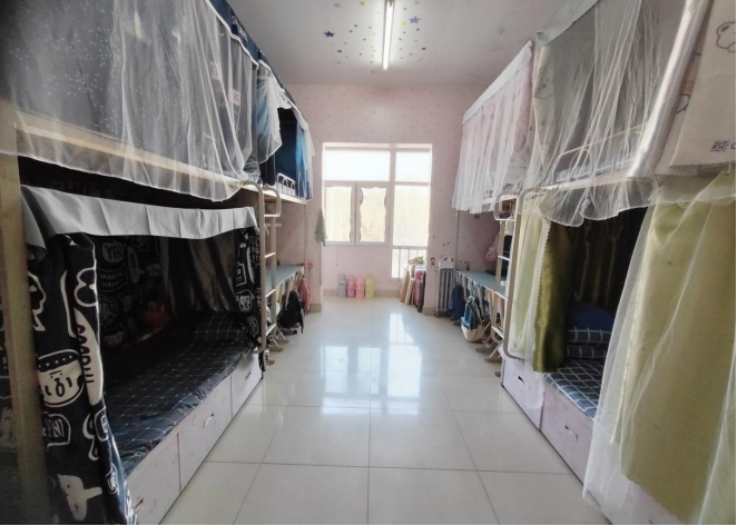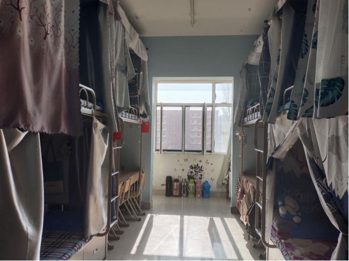 本次宿舍风采大赛获得三等奖的是13号楼302宿舍。牙刷斜倚在牙杯上,整齐地摆放在朦胧的镜子前,显得有些安详,被子上搭着温暖的枕头,六张小床紧紧相依,六个可爱的女孩朝夕相处。这里是忙碌了一天后可以见面的地方,这里是疲惫后可以安心睡觉的宫殿,这里是302宿舍充满浪漫的回忆。vlog中的她们一起吃饭,一起睡觉,一起哈哈大笑,一起唱歌,一起学习,一起快乐生活。没有烦恼,喜欢八卦,干饭积极,热爱生活!