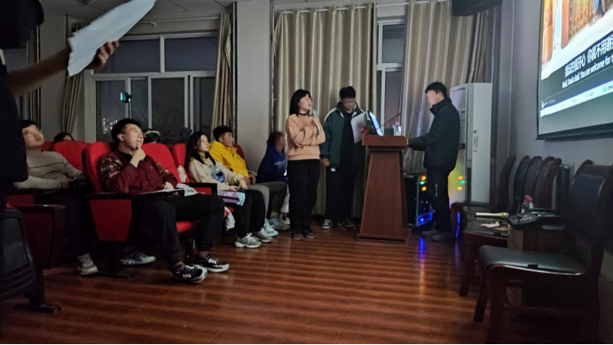 12 月 4日,由3200威尼斯vip举办的主题为 “似卿非卿,雏凤声清”的配音大赛在知行楼505圆满落幕。学生会主席团成员王凡,团委副书记王斯腾,校配音社副社长刘尚,原文艺部负责人王雅妮,原宣传部负责人孔令仪,团委戏剧团骨李昌霖等学生干部参加本次活动并担任评委。