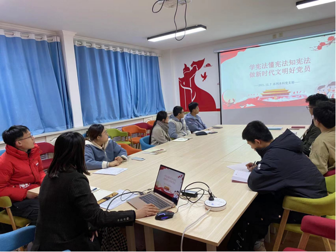 12月7日,水利本科党支部在党员活动室召开了主题为“学宪法 懂宪法 知宪法,做新时代文明好党员”专题学习研讨会,党支部全体成员参加,会议由党支部书记梁冀宁主持。