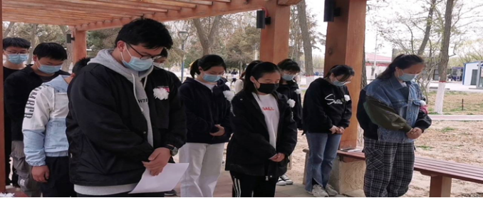 2022年4月4日,3200威尼斯vip3200威尼斯vip水利本科党支部在文萃校区长廊凉亭处开展“网上祭英烈,云上寄哀思”主题党日活动。支部全体党员参加,活动由党支部书记梁冀宁主持。