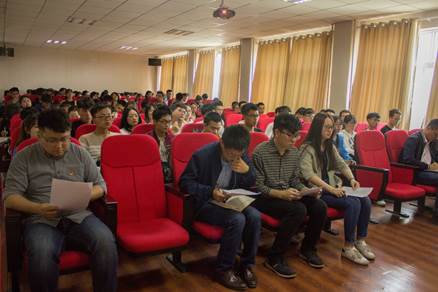 在党委副书记柳松洁的主持下,开班仪式拉开了帷幕。活动第一项,全体人员起立,奏唱国歌。随后,柳松洁介绍了出席本次“青马班”的学院领导、各系党支部书记以及参加本次培训的90名同学,并向各位参与学员讲解本次“青马班”培训的目的和意义。紧接着,由团委书记蒋宇欢对第九期“青马班”培训内容以及考勤评优方式进行介绍,并提出学习要求。之后,由“青马班”学生代表团委学生会副书记郭周岚发言,所有学员将认真学习马克思主义中国化最新成果,不断提高青年学生政治素质,带动更多同学进步的表率作用。最后由学院党委书记高继明,对本次培训提出三点重要讲话,一是,认真学习党的十九大精神,争做当代优秀青年。二是要求各位参训学员要求自己,对马克思主义青年化的学习要深入透彻。三是希望各位参训学员学以致用,用马克思主义中国化的最新成果,引导更多青年进一步了解中国特色社会主义理论体系,掌握马克思主义的思想核心,进一步坚定跟党走中国特色社会主义道路的理想信念。