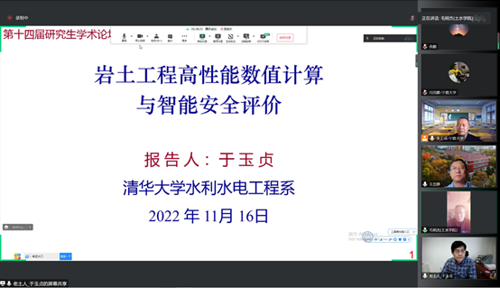 为了进一步提高研究生培养质量,为学院第十四届研究生学术论坛营造良好的学术氛围,2022年11月16日,清华大学于玉贞教授应邀为威尼斯vip官网师生做了题目为“岩土工程高性能数值计算与智能安全评价” 的线上学术报告,报告会由毛明杰院长主持,学院师生共200余人参加了报告会。